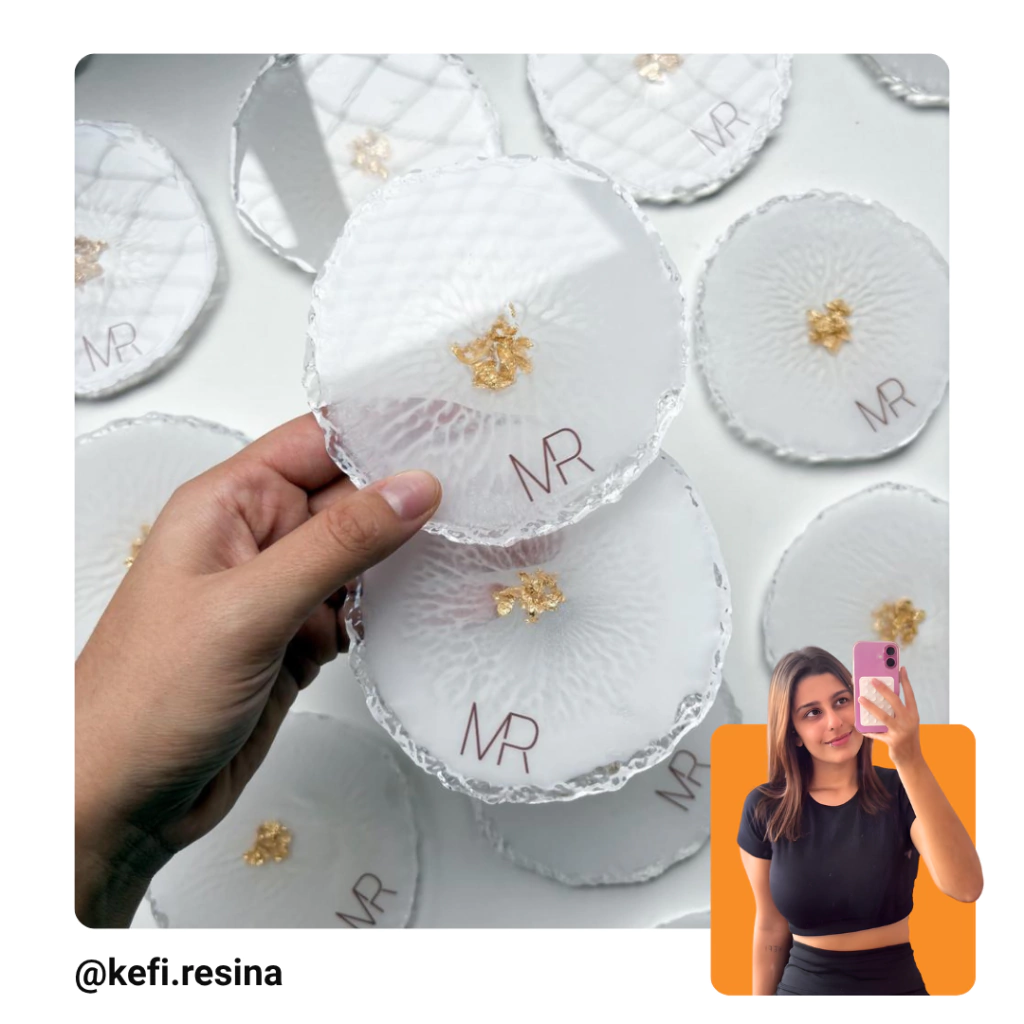 Acesse o Instagram da Gabi Kefi Resina e conheça mais sobre o trabalho dela, acompanhando suas criações, dicas e cursos diretamente por lá.
