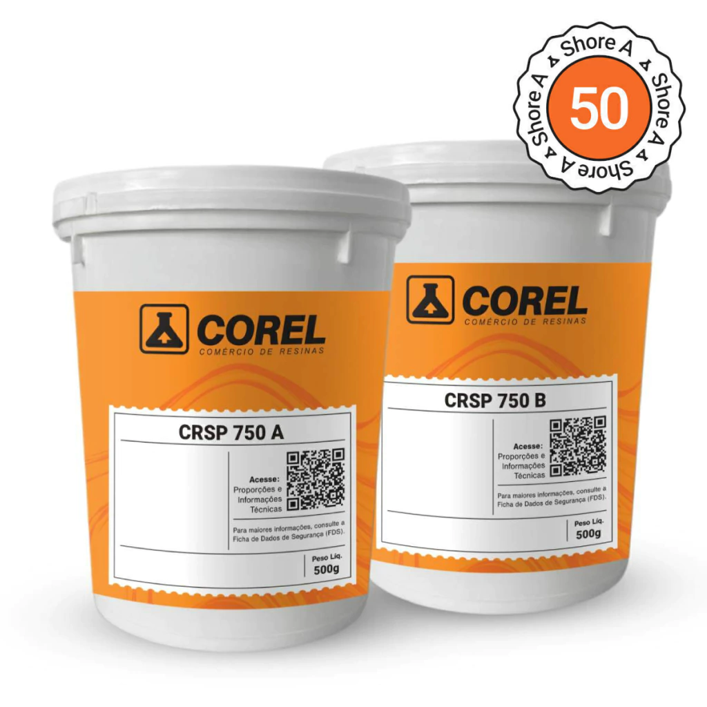 O Kit CRSP 750 - Dureza 50 é uma borracha de silicone platina, atóxica, desenvolvida especialmente para a criação de moldes de alta precisão. Com máxima resistência, flexibilidade e segurança, sua vulcanização à temperatura ambiente garante um material elástico e durável, perfeito para diversas aplicações.